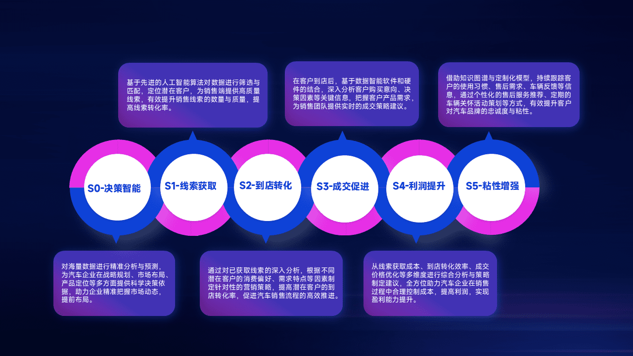 通过拓宽潜在客户来源、、优化线索分配并提高到店转化率,,以增强销售效率。。。同时,,,利用线索数据不断优化分析模型,,有效提升转化率,,扩大营销影响力。。。。